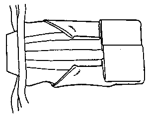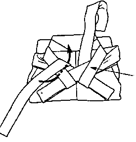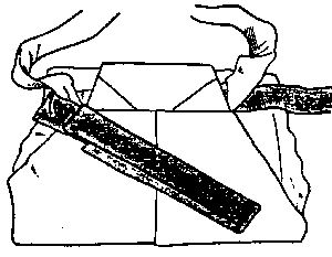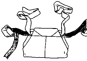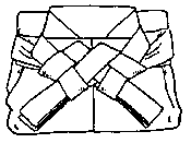 To fasten the ribbons in the hakama fold the ribbons like the picture shows. |
